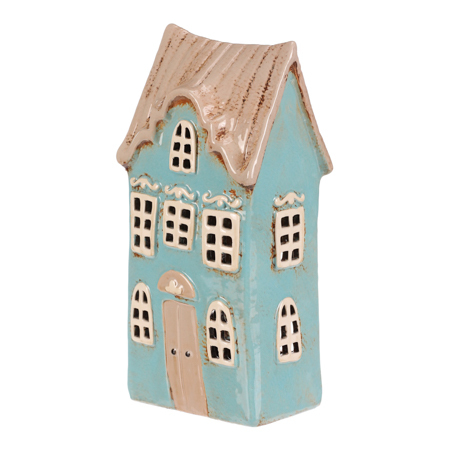 Keramický patrový domeček ve světle modrém odstínu, bude perfektní dekorací pro vánoční období. Uvnitř má prostor pro vložení čajové svíčky. Po jejím rozsvícení se rozzáří světlo skrze otvory v okénkách čímž navodíte neodolatelnou sváteční atmosféru.