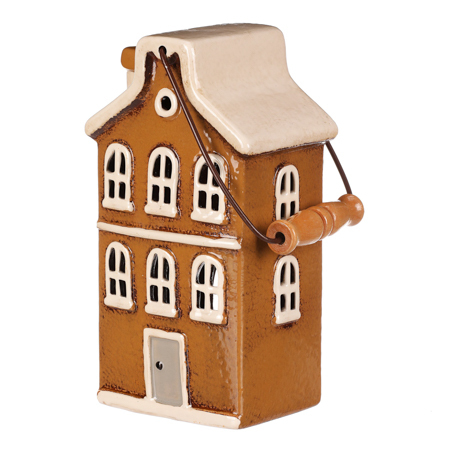 Domeček keramický - na čajovou svíčku, světle hnědý