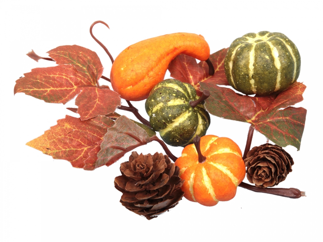 Podzimní dekorace - větvička, dýně a šišky. Sada 7 ks.