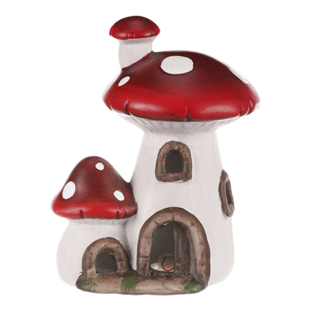 Oživte svou zahradu a přidejte do ní kouzelný dotek pohádky s naším keramickým domečkem ve tvaru houby s LED světlem. Tento úžasný dekorativní prvek přinese do vaší zahrady pohodu a zářivé světlo. To je ideální pro večerní posezení, romantické osvětlení nebo prostě pro doplnění vašeho venkovního dekoru. Užijte si večery plné pohody a magie světa lesních bytostí s naším houbovým domečkem.