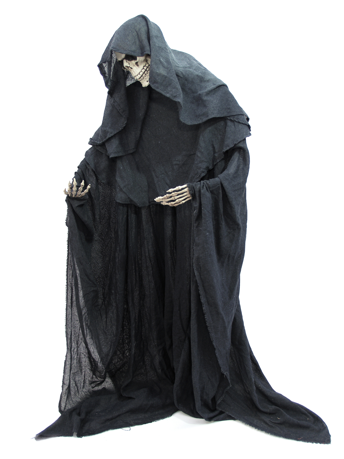 Stojící figurína kostlivce v černé róbě. Lze libovolně ohýbat. Včetně podstavce. Rozměry 160 cm x 70 cm x 20 cm.Výška: 160 cmŠířka: 70 cmHloubka: 20 cm