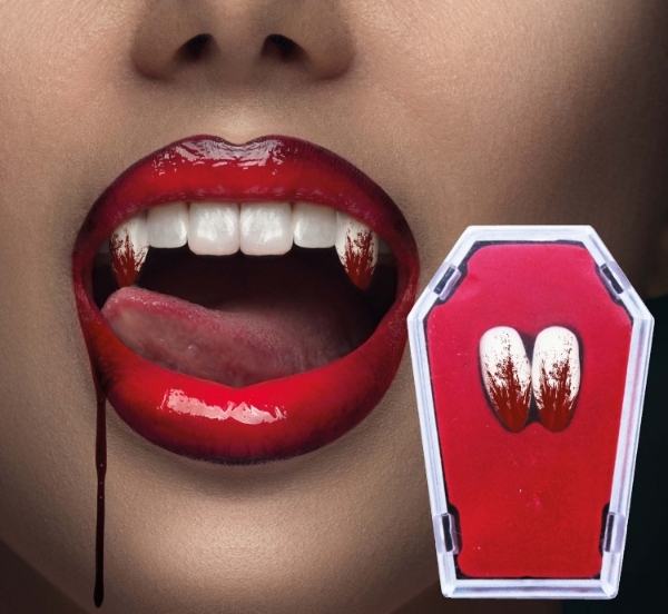 Proměň se během chvíle v děsivého upíra! Tyto krvavé špičáky s bílým základem a realistickým červeným nátěrem skvěle doplní každý hororový kostým. Pomocí přiloženého termoplastu je snadno upevníš na své zuby - bez potřeby lepidla. Ideální doplněk pro Halloween, strašidelnou párty nebo tematické focení. Vše je baleno ve stylové krabičce ve tvaru rakve.
