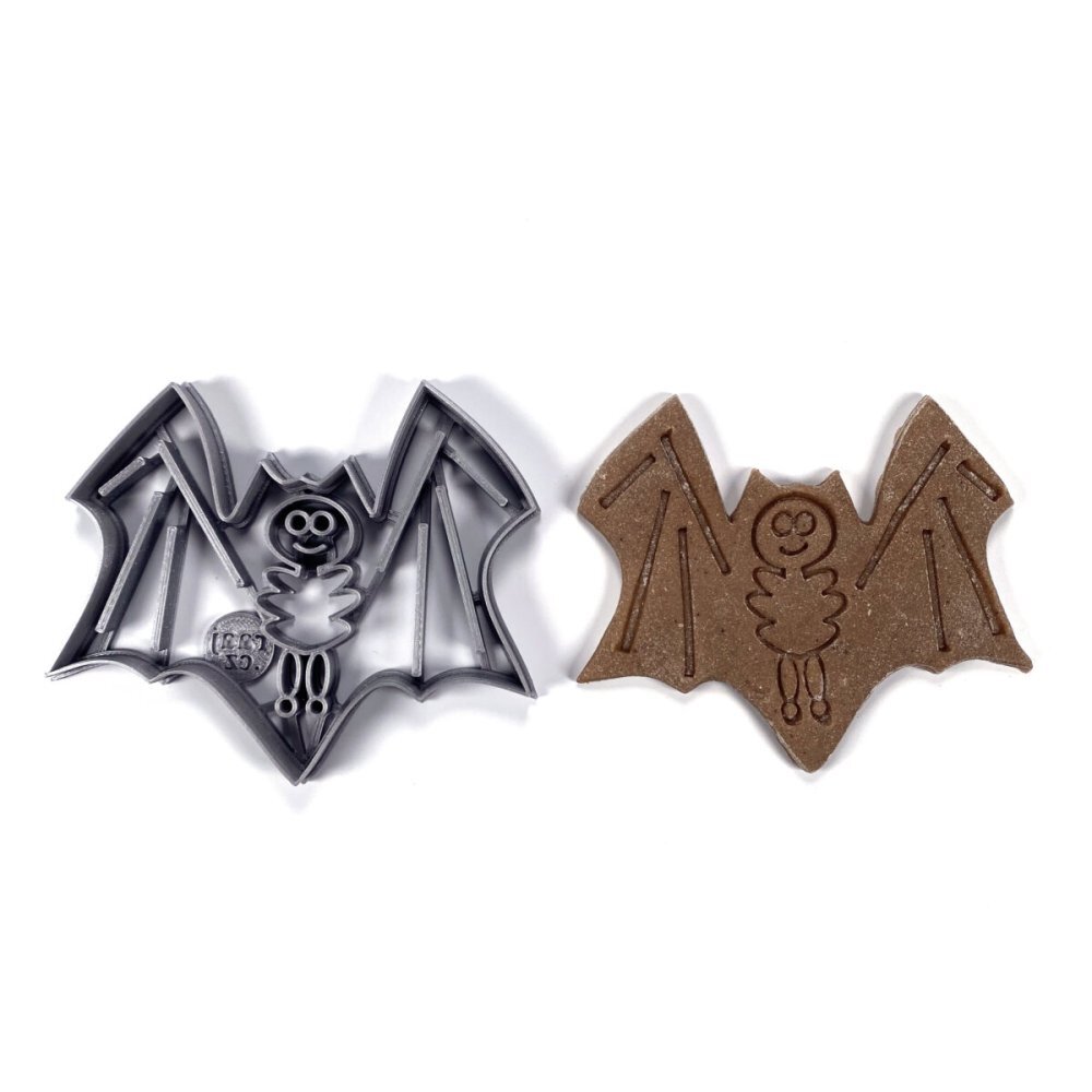 Precizní 3D vykrajovátko strašlivého netopýra tiskneme z plastového materiálu PLA (biologicky odbouratelný), odolný do 50°C, nevhodný do myčky na nádobí. Středová linie vykrajovátka zajistí přesný vzhled a snadné zdobení. Využití najdete při práci s těsty (na perníčky, sušenky, cukroví), fondánem, marcipánem, a také při tvarování umělých hmot jako plastelína, Play-Doh, Modurit, keramická hlína, Fimo apod. Před prvním použitím a vždy po použití vykrajovátko omyjte jarovou vodou a důkladně osušte. Pro snazší vykrajování těst je vhodné vykrajovátko nejprve vložit do misky s moukou. Není určeno pro děti do 3 let, hrozí odlomení malých částí.