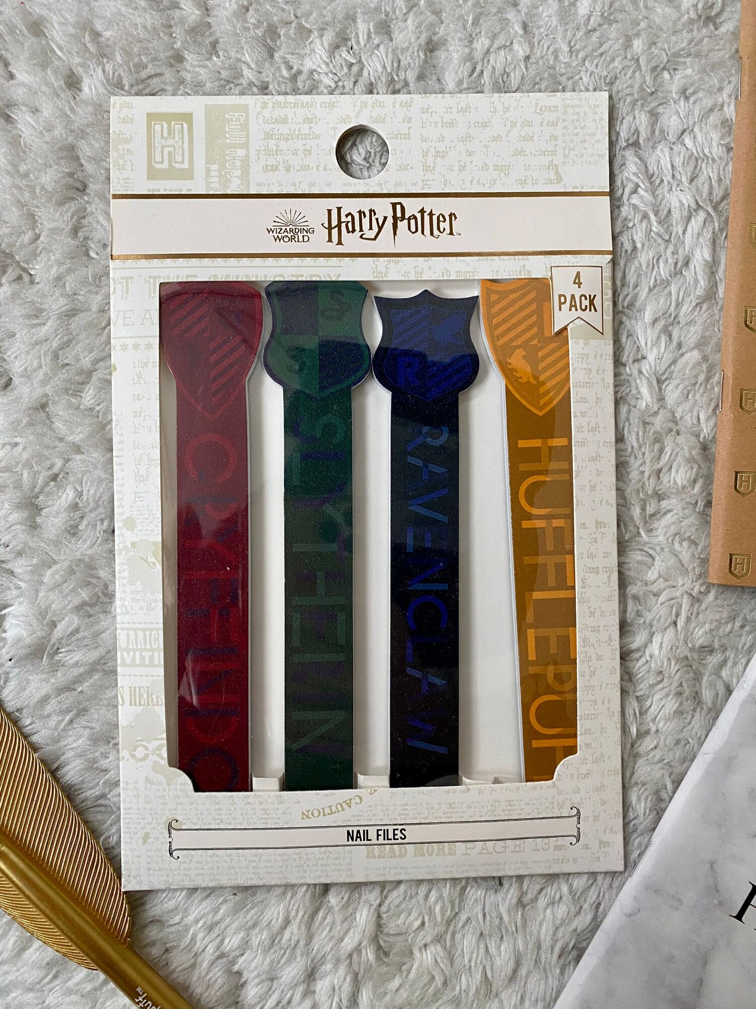 Pilníky na nehty v designu bradavických kolejí - Havraspár, Mrzimor, Nebelvír a Zmijozel. Sada obsahuje všechny 4 pilníky.