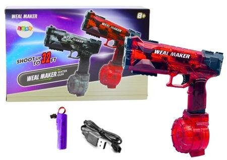 Pistolet Na Wodę Automatyczny Elektryczny Czerwony Automatyczny Pistolet na wodę w kolorze czerwonym to zaawansowana zabawka, która zapewnia niezwykle ekscytującą zabawę podczas upalnych dni. Wykonany z solidnego tworzywa, pistolet charakteryzuje się wysoką trwałością i dopracowanymi detalami, które gwarantują nie tylko estetyczny wygląd, ale także długotrwałe użytkowanie. Jednym z kluczowych atutów tego pistoletu jest jego zasilanie akumulatorowe. Dzięki zastosowaniu akumulatora, urządzenie oferuje dużą moc strumienia wody, co przekłada się na długotrwałą zabawę i efektywne strzały. Zasięg strumienia wody wynosi nawet do 10 metrów, co zapewnia dynamiczną zabawę i umożliwia celowanie w odleglejsze cele. Pistolet wyposażony jest w przezroczysty pojemnik na wodę, co stanowi praktyczne rozwiązanie umożliwiające bieżącą kontrolę poziomu wody. Dzięki temu użytkownik zawsze wie, kiedy napełnić pojemnik, co pozwala na nieprzerwaną zabawę. Design pistoletu na wodę w kolorze czerwonym jest nie tylko nowoczesny, ale również ergonomiczny, co zapewnia komfortowe trzymanie i precyzyjne kierowanie strumieniem wody. Solidna konstrukcja i wysokiej jakości materiały sprawiają, że pistolet jest odporny na uszkodzenia i idealnie sprawdza się w intensywnych zabawach na świeżym powietrzu. Idealny do zabaw w ogrodzie, na plaży czy na basenie, automatyczny pistolet na wodę to doskonały wybór dla każdego, kto pragnie cieszyć się letnimi dniami w pełni. Jego funkcjonalność, moc i estetyczny wygląd sprawiają, że jest to świetny wybór zarówno dla dzieci, jak i dorosłych poszukujących rozrywki w gorące dni. Pistolet zasilany jest na akumulator 3.7V 1200mAh, który jest elementem zestawu. Do akumulatora dołączona jest ładowarka. Wymiary pistoletu: 26cm x 19cm Wymiary opakowania: 34,5cm x 22,5cm x 10cm Posiada certyfikat CE, ponadto jest zgodny z normą EN71. Przeznaczony dla dzieci powyżej 8 roku życia.