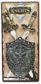 W zestawie: 2 x miecz, tarcza, Pozostałe informacje: dł. miecza 49 cm, tarcza 28 x 20 cm, wym. opak. 55,5 x 26 cm, 3+ číst celé