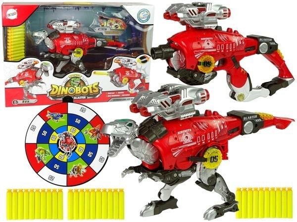 Dinobots 2w1 Dinozaur Pistolet na Strzałki Czerwony Tyranozaur Rex Tarcza