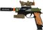 Pistole je vyrobena z kvalitního plastu a vypadá opravdu věrohodně. Součástí balení jsou i praktické doplňky: zaměřovač, světlo a tlumič, které umožní ještě variabilnější herní zážitky. Vše je poháněno bateriemi, které jsou již přiloženy, takže můžete hned začít hrát.
