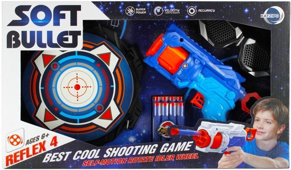 Zalety produktu: pistolet lekki i wygodny w trzymaniu, miękkie i nie szkodliwe pociski piankowe, strzałki należy umieścić w magazynku a po naciśnięciu spustu pocisk wystrzeliwuje z pistoletu. Pistolet MEGA CREATIVE zapewni niezwykle emocjonującą zabawę każdemu dziecku, zarówno dużemu jak i małemu! Nie należy strzelać do zwierząt! Zawartość zestawu: pistolet, 8 piankowych strzałek, okulary ochronne, tarcza. Zestaw wykonany z plastiku oraz pianki. Wymiary/waga/baterie: wymiary produktu (dł. x wys. x gł.) [cm]: 22x13x6 , wymiary opakowania (dł. x wys. gł.) [cm]: 45x27x7, waga produktu bez opakowania [kg]: 0,41 kg, waga produktu w opakowaniu [kg]: 0,58 kg, nie wymaga zasilania bateriami. Zabawka przeznaczona dla dzieci w wieku: 6+. Pakowana w kartonik z okienkiem.