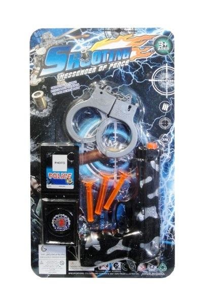 Plastikowy zestaw policyjny składający się z pistoletu, gumowych strzałek, legitymacji służbowej oraz kajdanek. Nadaje się do podwórkowej zabawy w policjantów. Sprawdzi się także jako rekwizyt do stroju karnawałowego. Zabawka przeznaczona dla dziecka powyżej 3 roku życia. Produkt zapakowany w...