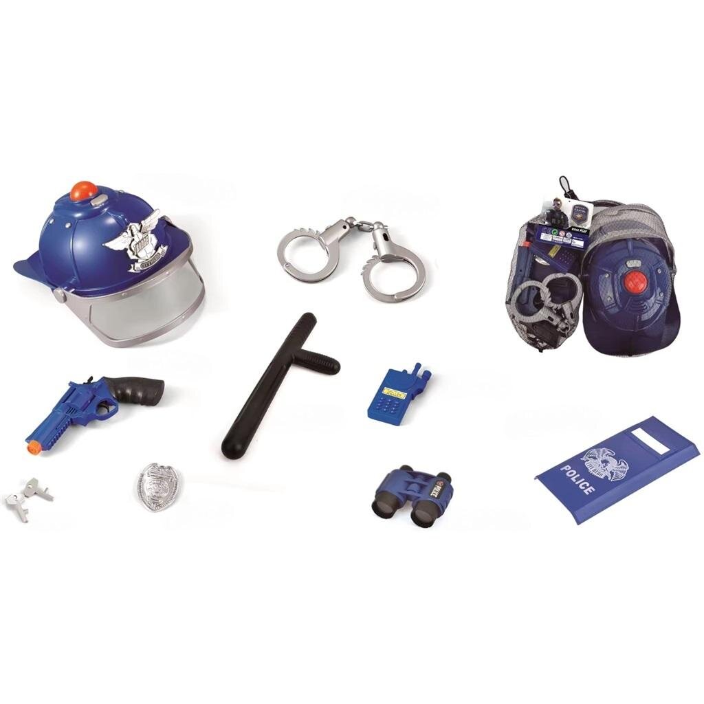 Zestaw małego policjanta to wymarzona zabawka dla każdego dziecka lubiącego służby mundurowe. Umożliwi maluchowi wcielenie się w postać profesjonalnego policjanta. Zestaw składa się z 9 elementów, które przedstawiają podstawowe sprzęty używane przez policjantów. Kask policjanta z efektami świetlno-dźwiękowymi, zaprojektowany tak, aby odzwierciedlał prawdziwy kask, sprawia, że zabawa staje się jeszcze bardziej realistyczna i ekscytująca.