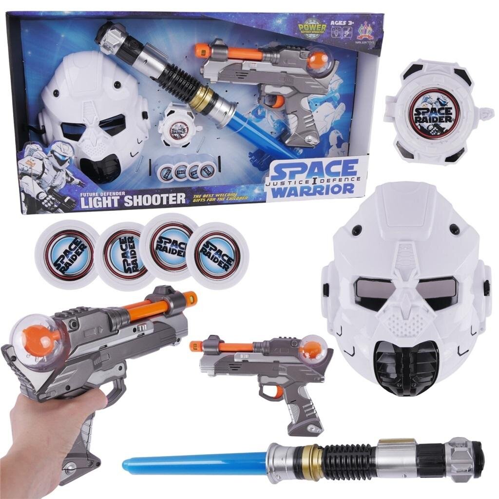Maska, miecz świetlny i miotacze dysków dołączone do zestawu urozmaicą każdą zabawę oraz kosmiczną przygodę.