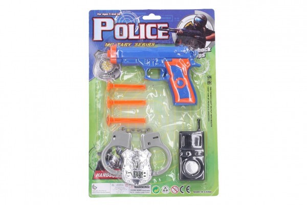 Policejní sada plast pistole na přísavky 15cm náboje 3ks s doplňky na kartě