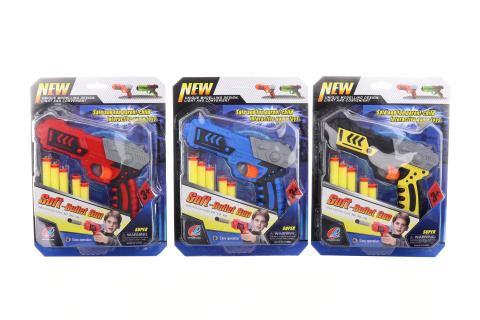 Plastová pistole s 5 pěnovými náboji s přísavkami. Rozměr zbraně cca 19 cm. Rozměry balení cca 23 x 30 x 4 cm. Věk 3+ číst celé