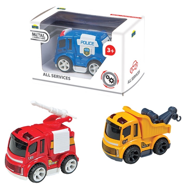 Kovové autíčko na setrvačník. Policisté, hasiči a služby. Prodává se jako mix. číst celé