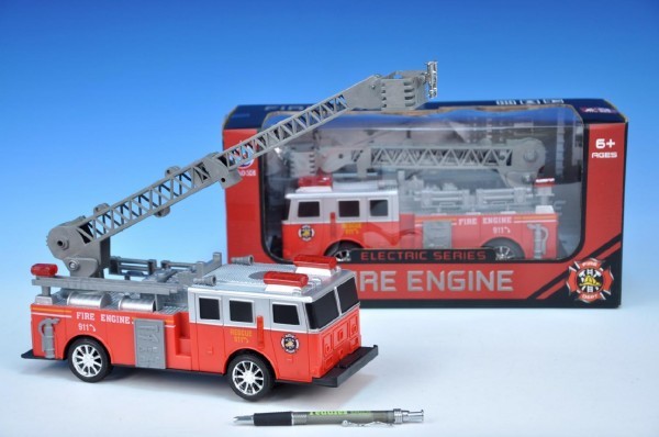Auto Hasiči plast 26cm narážecí na na baterie se zvukem se světlem v krabici