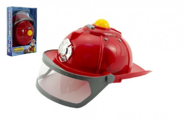 Helma přilba hasič plast 28cm na baterie se světlem se zvukem v krabici 22x33x6cm