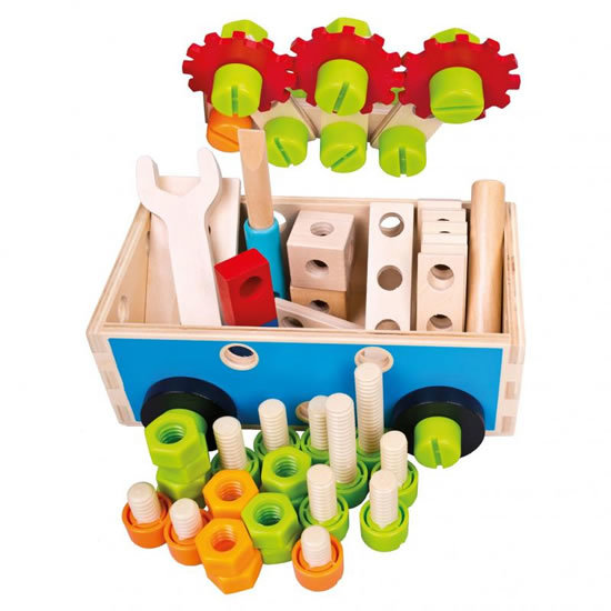 - Multifunkční dřevěné auto s nářadím a spojovacím materiálem