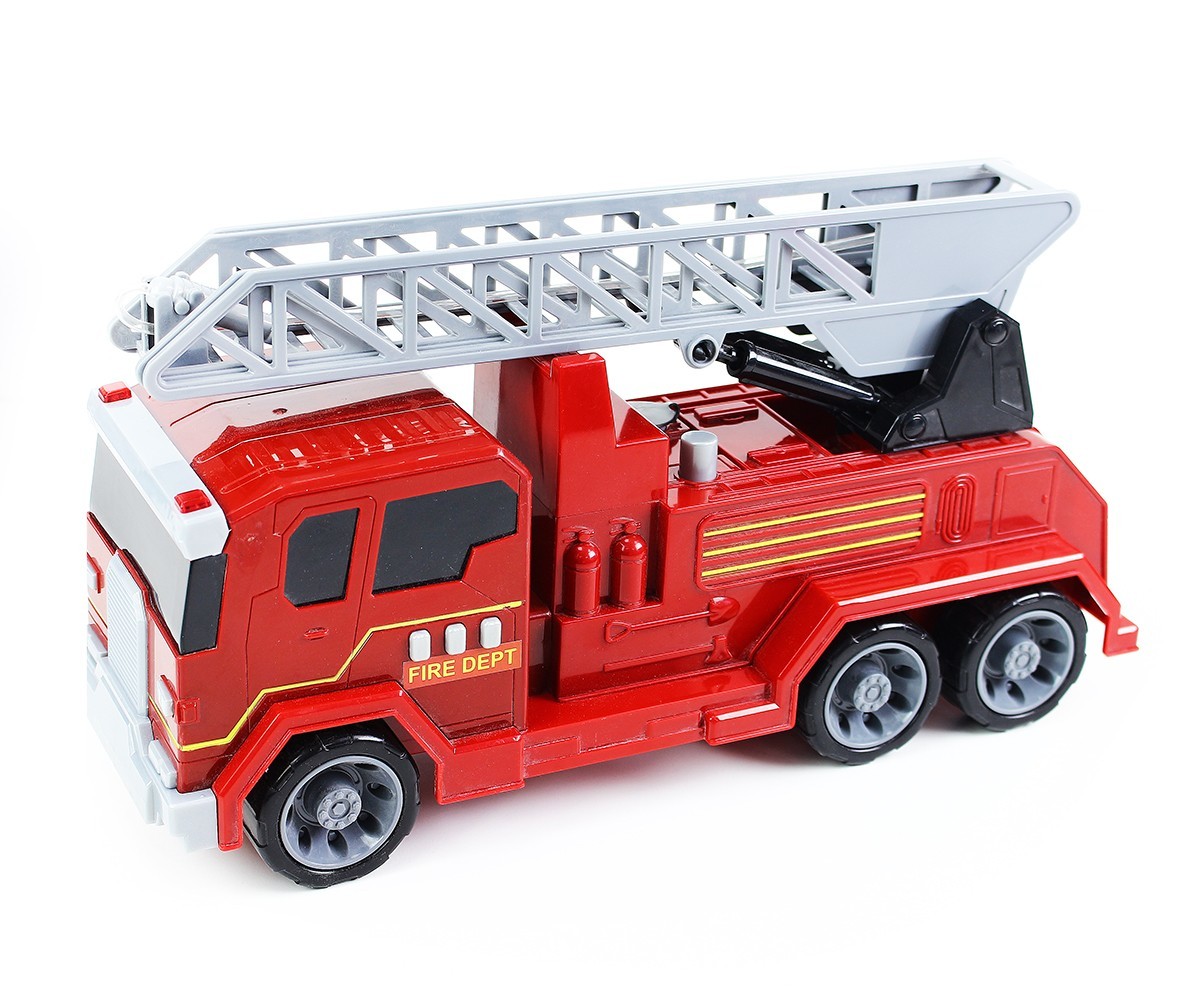 Moderní hasičský vůz se světelným a zvukovým efektem pro malé hasiče! Parádní plastové auto hasiči je vybaveno výsuvným žebříkem a je dlouhé cca 35 cm.Tento parádní kousek vyžaduje 2 ks AA baterie, které nejsou součástí balení. Senzace! Auto má pohyblivé části a při naplnění vodou má funkční vodní dělo. Rozšiř si sbírku klasických autíček o tento moderní hasičský kousek!
