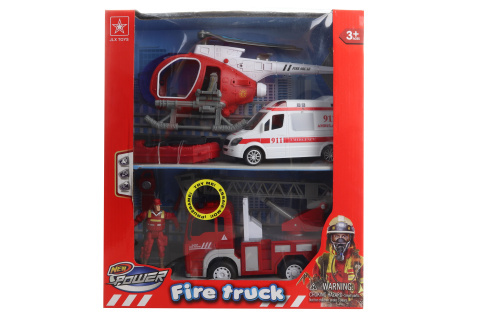 Hasičská sada obsahuje helikoptéru, sanitku, člun, hasiče a hasičské auto na baterie - napájení na 3 AG13 baterie (jsou součástí balení). Rozměry balení cca 32,5 x 36,5 x 11,5 cm. Věk 3+ číst celé