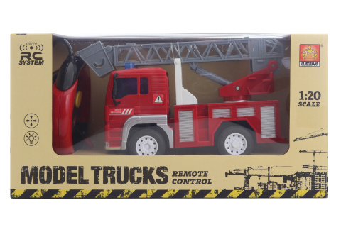 Hasičské auto na dálkové ovládání. Auto jezdí dopředu, dozadu a zatáčí. Napájení auta na 3 AAA baterie (nejsou součástí) a ovládání na 2 AA baterie (nejsouo součástí balení). Rozměry balení cca 31 x 14 x 15,5 cm. Věk 3+