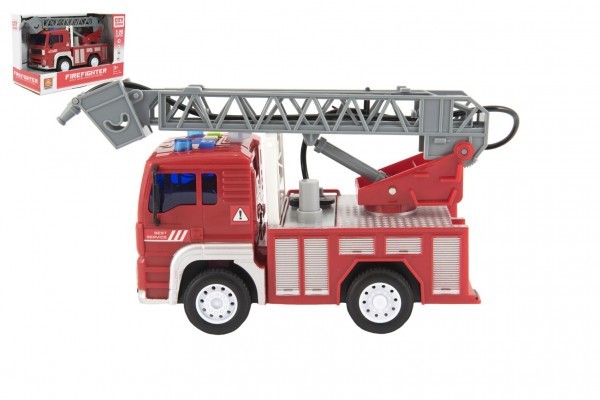 Auto hasiči stříkací vodu 20cm plast na setrvačník na bat. se zvukem se světlem v krabici 24x16x12cm