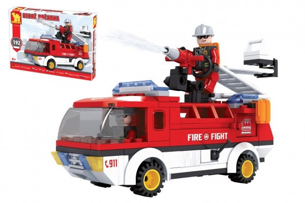 Kostky stavebnice Dromader auto hasiči 192 dílků v krabici 35x25x5,5cm