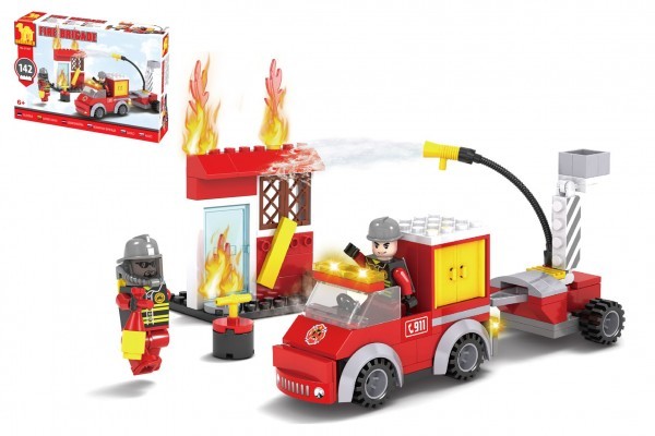 Kostky stavebnice Dromader hasiči 142 dílků v krabičce 22x15x5cm