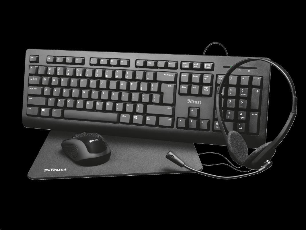 TRUST PRIMO 4-IN-1 HOME OFFICE SET CZ/SK - set klávesnice a myši, sluchátek a podložky k myši