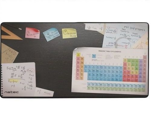 Podložka pod myš Natec Science Maxi s rozměry 800 x 400 mm chrání pracovní stůl před poškozením. Její kvalitní povrch i zpracování zlepšuje přesnost snímání pohybu myši a také snižuje tření mezi podložkou a myší. Podložka disponuje unikátním potiskem s vyobrazením tabulky periodických prvků i základních fyzikálních a chemických vzorců. Spodní strana má protiskluzovou gumovou vrstvu, která zabraňuje posouvání po stole.