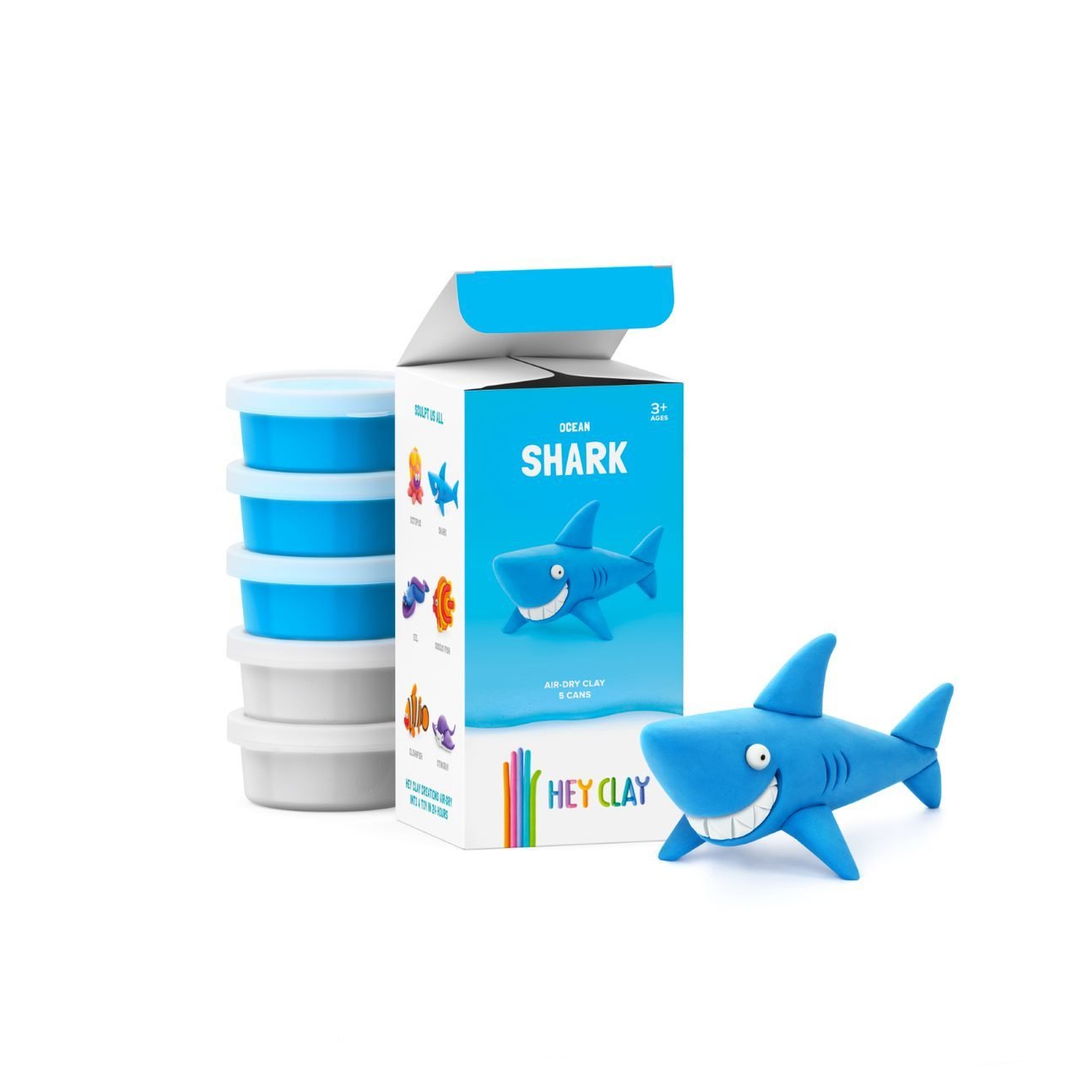 Sada Hey Clay obsahuje pět měkkých, jemných a příjemně voňavých barevných modelín, ze kterých si děti mohou snadno vytvořit různé postavičky, zvířátka či jejich oblíbené hrdiny. Po vymodelování je potřeba figurky nechat zatvrdnout na vzduchu a získat tak pevnou součást další hry. Navíc je zde možnost uložení modelíny zpět do kelímku pro pozdější opětovné využití. Součástí balení je také přístupový kód do mobilní aplikace Hey Clay (dostupné pro iOS a Android), která dětem nabízí nové možnosti, jak dále rozvíjet představivost, základní znalosti o barvách a zábavnou cestou tvořit nové postavičky.