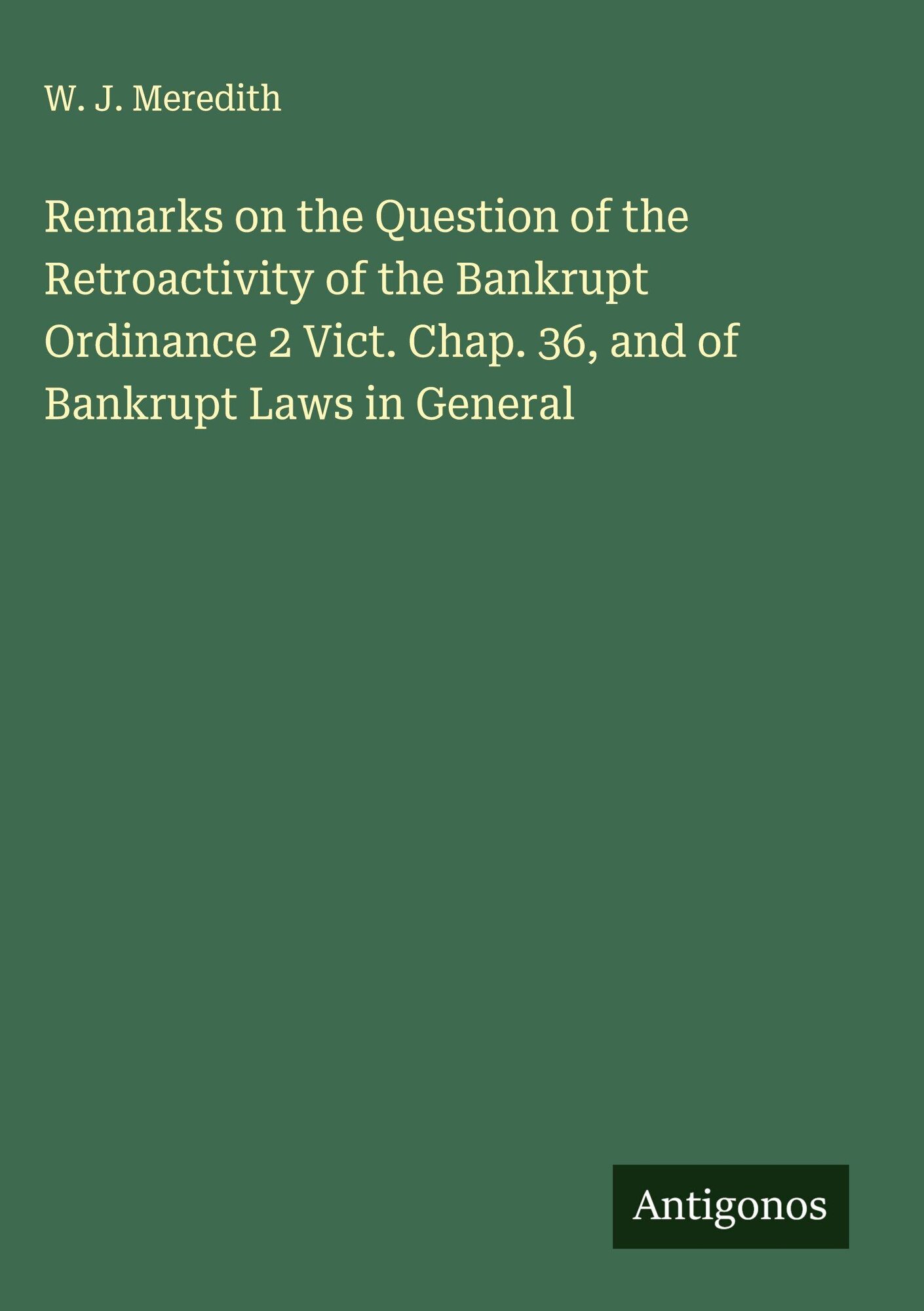 Remarks on the Question of the Retroactivity of the Bankrupt Ordinance 2 Vict. Chap. 36, and of Bankrupt Laws in General (anglicky)