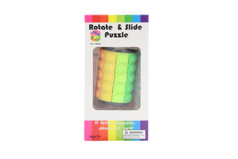 Hlavolam nabízí jednoduchý, ale efektivní mechanismus, který umožňuje otáčet a posouvat jednotlivé části válce. Jde o skvělou výzvu nejen pro děti od 3 let, ale i pro dospělé, kteří mají rádi logické hry. Jeho kompaktní rozměry (cca 7 cm) zaručují, že si ho můžete vzít kamkoliv s sebou - do školy, kanceláře nebo na cesty.
