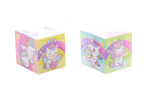 Kostka skládací jednorožec velikosti cca 5,5 cm.Baleno v sáčku.Věk 3+ číst celé