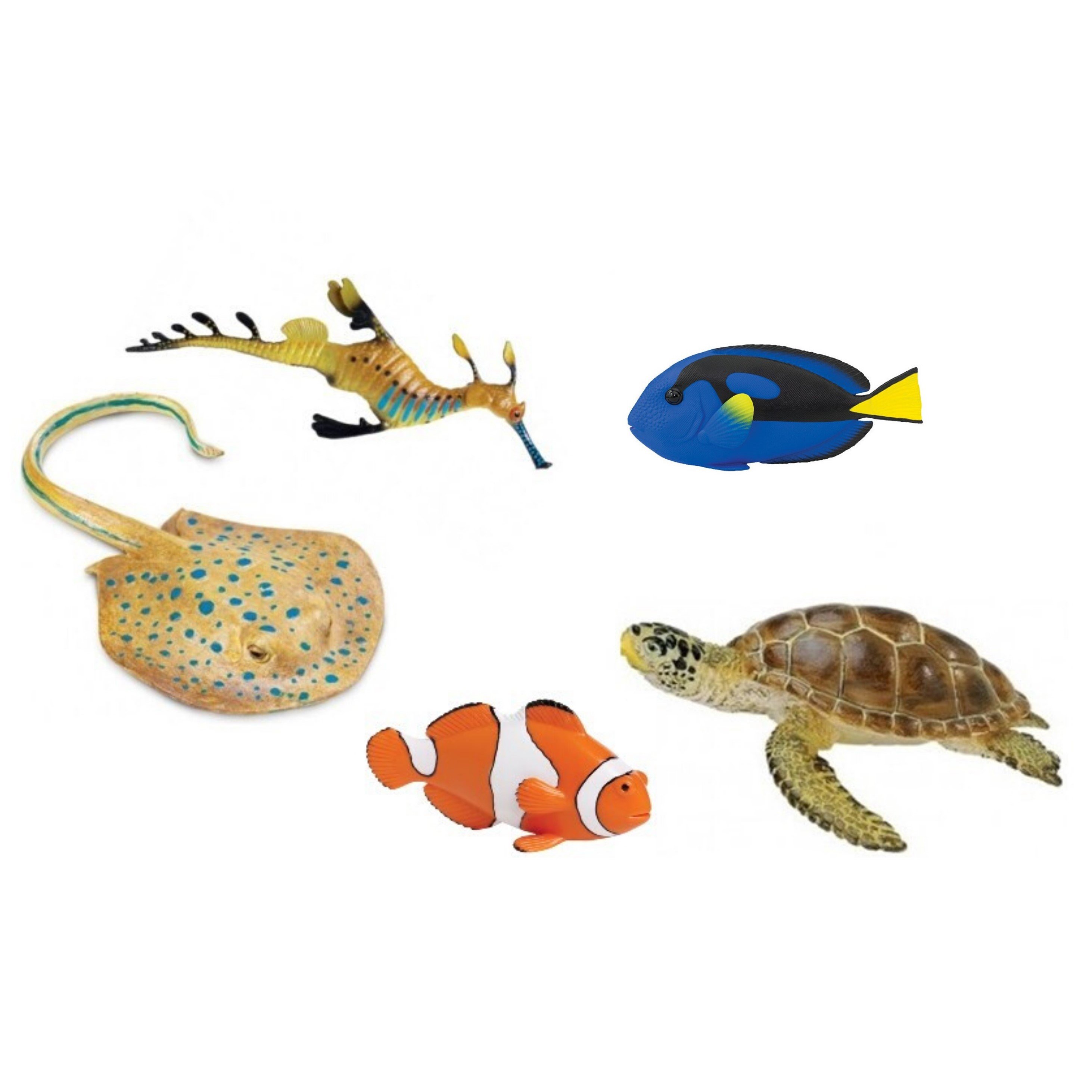 Balíček replik s názvem Mořský útes od firmy Safari Ltd., v kterém najdete bodloka pestrého, klauna, trnuchu, karetu a mořského draka.