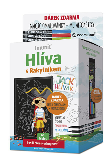 Unikátním složením, který obsahuje beta-glukany z hlívy, extrakt z rakytníku, nukleotidy, jód, selen a další vitaminy, se JACK HLÍVÁK pro děti stává jedinečným doplňkem stravy na českém trhu.DÁREK: Magic omalovánky + metalické fixy.