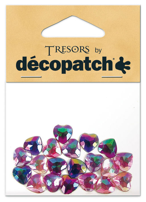 Zestaw 20 szt. kryształków w kształcie serca róż/fiolet. BJS103, Decopatch