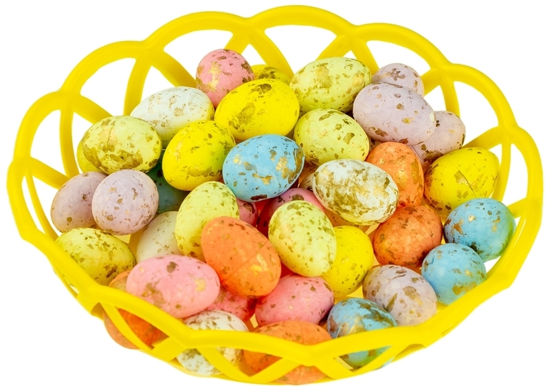 Jajka styropianowe kolorowe pozłacane w koszyczku. Op. Zawiera 46 szt., wysokość 2,5 cm. sp. pak. 1/6/72 číst celé