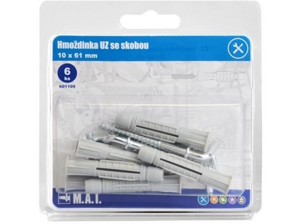 Uzlovací hmoždinka se skobou 10 x 61 mm pro tenké nebo duté stavební materiály zajistí pevné kotvení pomocí vzniklého uzlu při utahování vrutu.