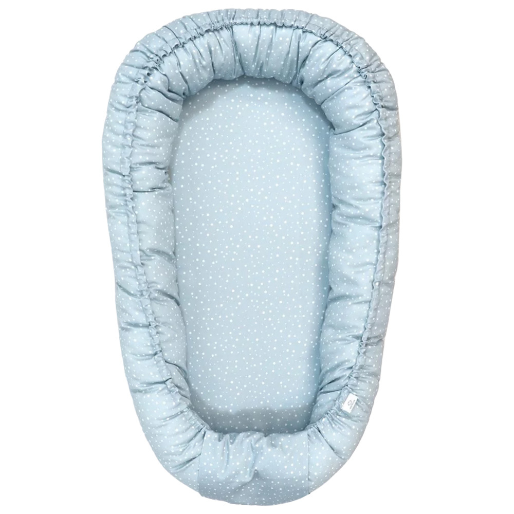 Hniezdo pre bábätko SOFTELLO v dizajne svetlomodrá bodka je vyrobené z kvalitného bavlneného saténu a má náš vlastný originálny dizajn. Tento materiál je na dotyk v porovnaní s klasickou bavlnou oveľa príjemnejší. Je jemnučký a hebký, takže vaše bábätko sa v ňou bude cítiť ako v bavlnke.