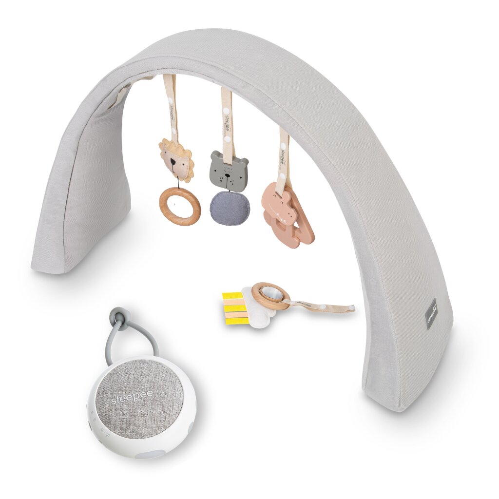 Nastavitelná hrazdička s hračkami a bílým šumem 2v1 Sleepee Grey
