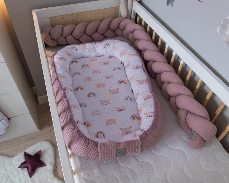 Baby Nellys Oboustranné hnízdečko, kokon Vafel, bavlna LUX, 60 x 90 cm - Duha, pudrová
