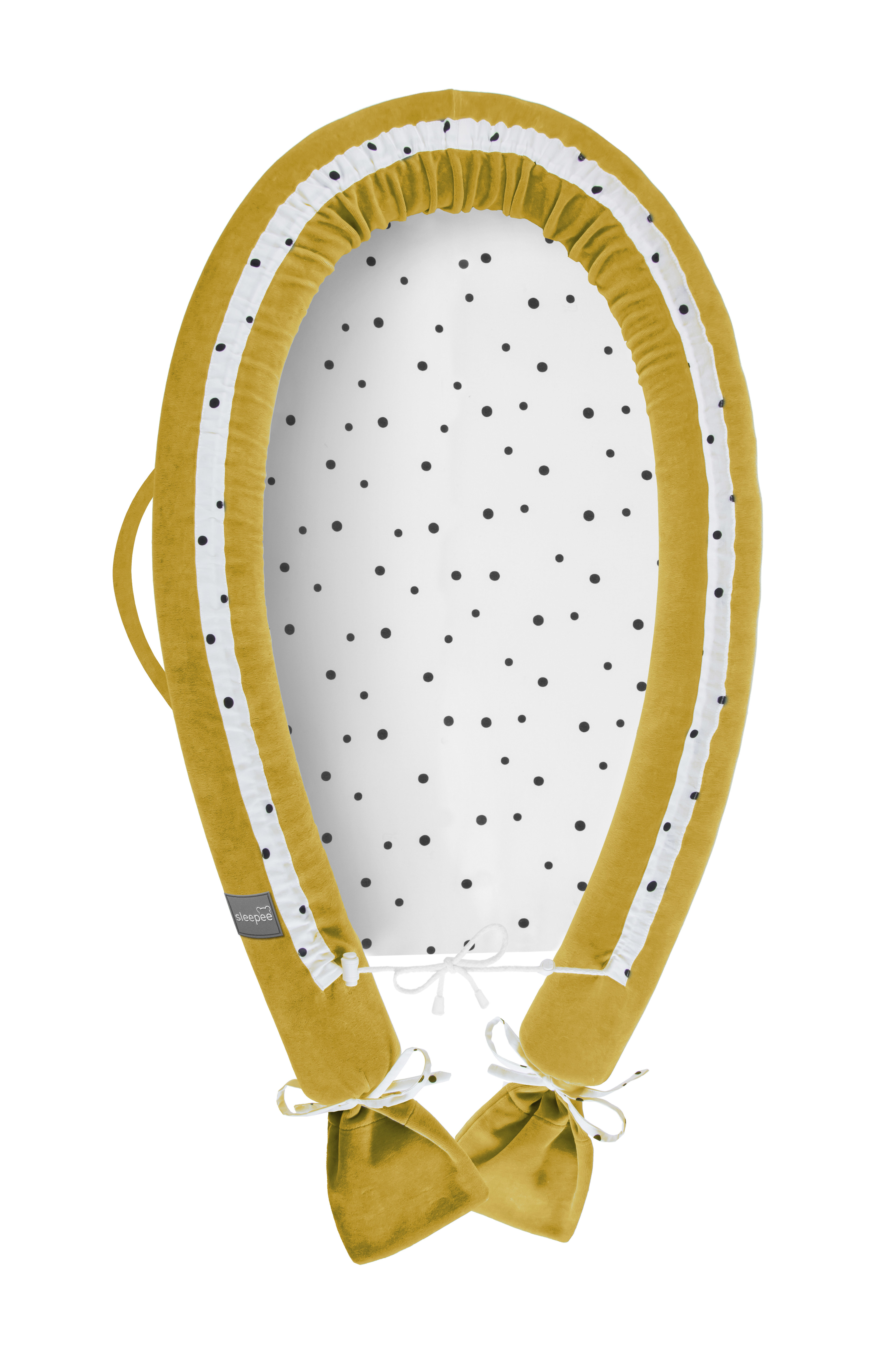 Hnízdečko Sleepee Royal Baby Tmavě žluté je nezbytnou součástí základní výbavičky pro miminko. Využijete ho v dětské postýlce, při společném spaní v manželské posteli i jako přenosnou postýlku. Je ručně šité ze 100% certifikované bavlny nejvyšší kvality.