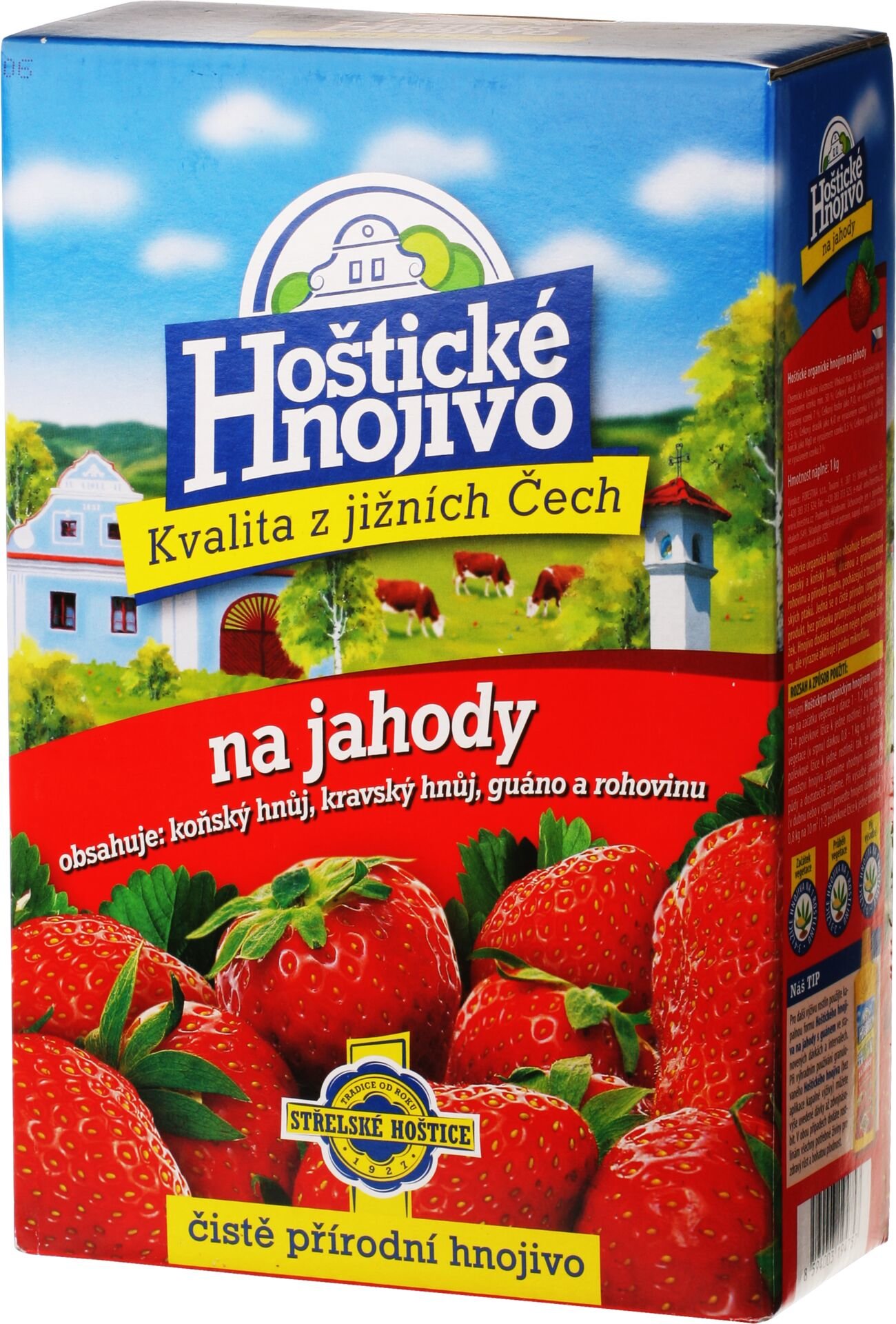 Hoštické organické hnojivo na jahody obsahuje fermentovaný kravský a koňský hnůj, drcenou a granulovanou rohovinu a přírodní guáno, pocházející z trusu mořských ptáků. Jedná se o čistě přírodní produkt, bez přídavku průmyslově vyráběných složek. Hnojivo dodává nejen potřebné živiny, ale výrazně aktivuje i půdní mikroflóru.