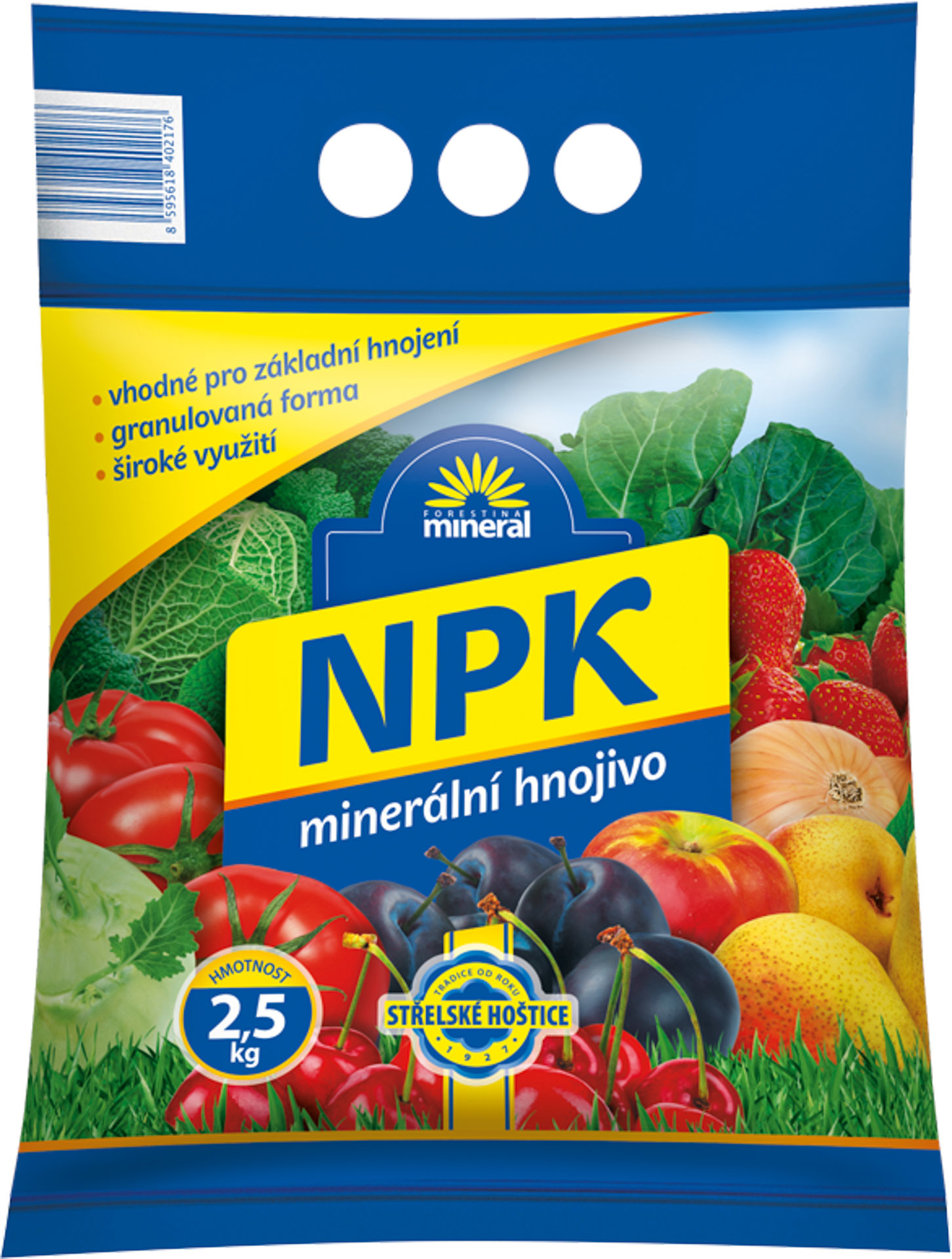 - NPK hnojivo s poměrem živin 11% dusíku, 7% fosforu a 7% draslíku.