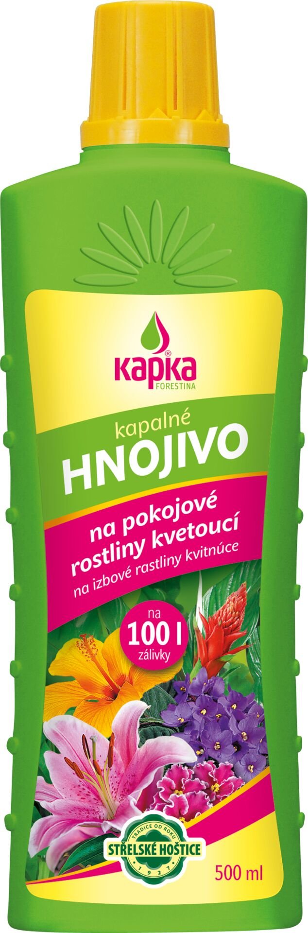Kapka - pokojové kvetoucí 500 ml je rychle účinné a snadno použitelné hnojivo, které podpoří vitalitu a krásu vašich rostlin. Díky vyváženému složení živin zajistí zdravý růst, bohaté nasazení poupat i sytě zelené listy, které zvýrazní půvab každé domácí květiny.