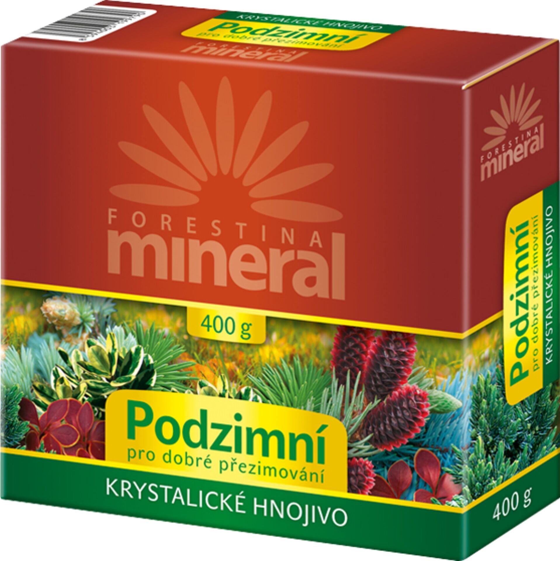 Krystalické hnojivo PODZIMNÍ je vodou rozpustné hnojivo určené k výživě všech druhů vytrvalých rostlin ( jehličnanů, ovocných i okrasných stromů, keřů a trvalek ) na podzim. Vyváženým složením hlavních živin a obsahem mikroprvků a zvýšeným obsahem draslíku poskytuje uvedeným rostlinám vše potřebné ke zdárnému přezimování.