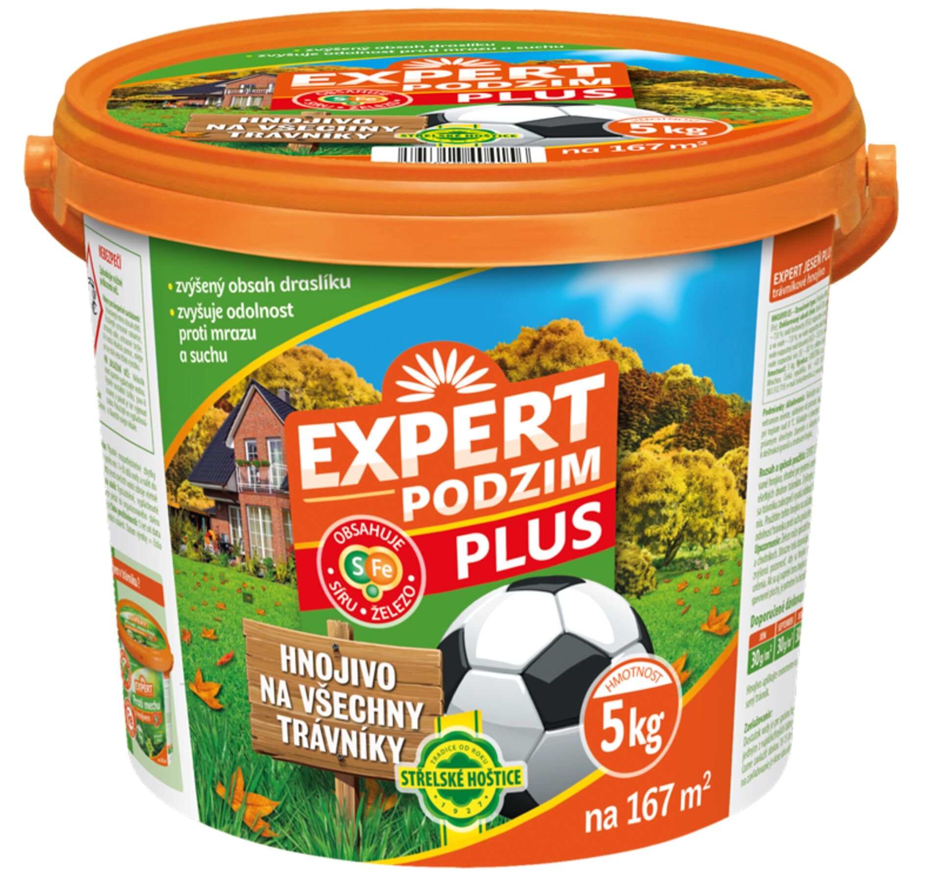 Hnojivo EXPERT PODZIM PLUS je granulované hnojivo, vhodné pro podzimní a pozdní podzimní hnojení všech druhů trávníků. Vysokým obsahem draslíku se zabezpečí vysoká odolnost trávníku proti vymrzání a napadení houbovými chorobami, které se šíří hlavně pod sněhovou pokrývkou. Použitím tohoto hnojiva na začátku léta (červen), se zvýší odolnost trávníku proti suchu v průběhu letních měsíců. Jemná granulace, potlačování mechu v trávníku.