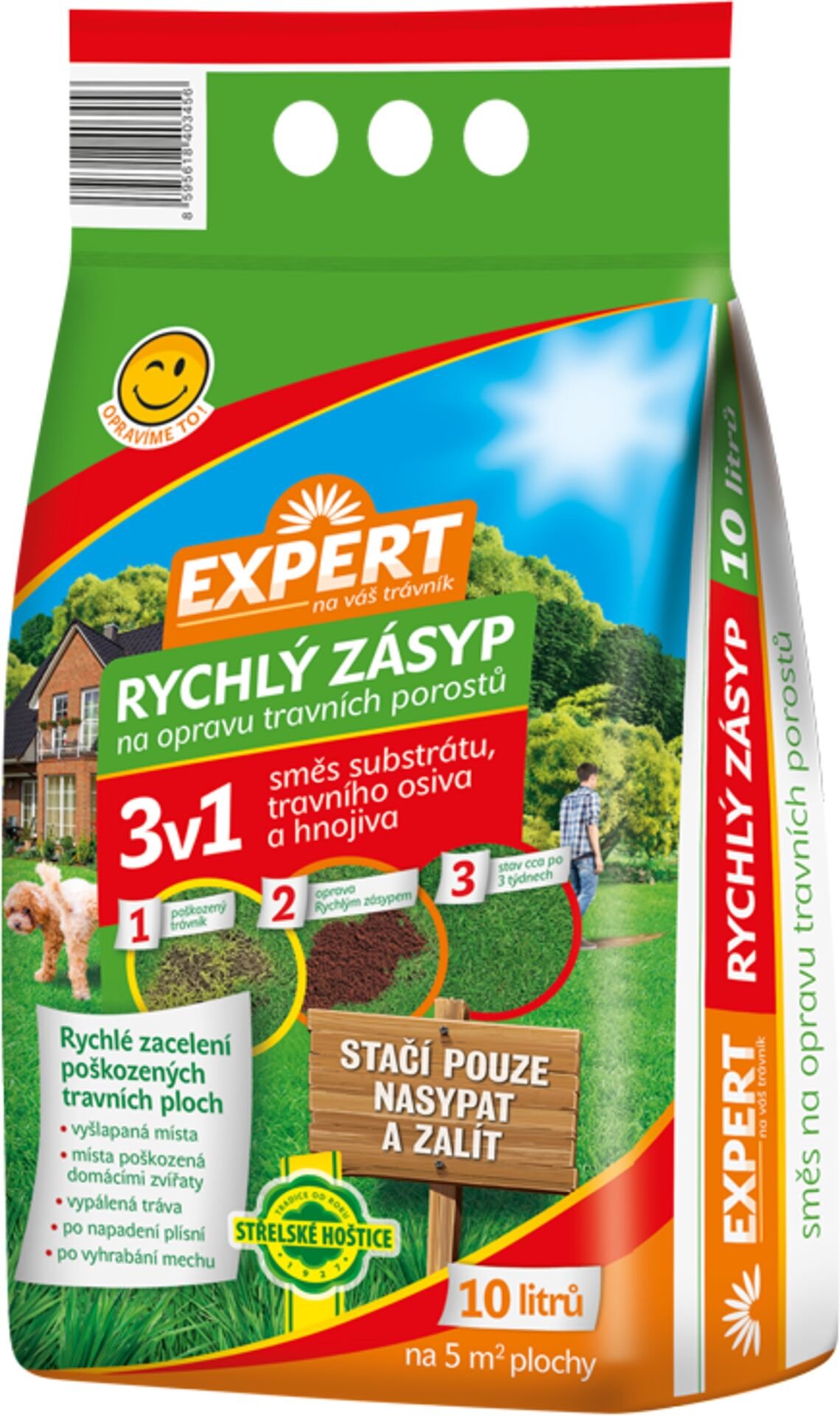 Rychlý zásyp Expert 3v1 umožňuje snadnou a efektivní opravu poškozených míst v trávníku, ať už byly způsobeny vyšlapáním, mechanickým poškozením nebo přirozeným odumřením trav.