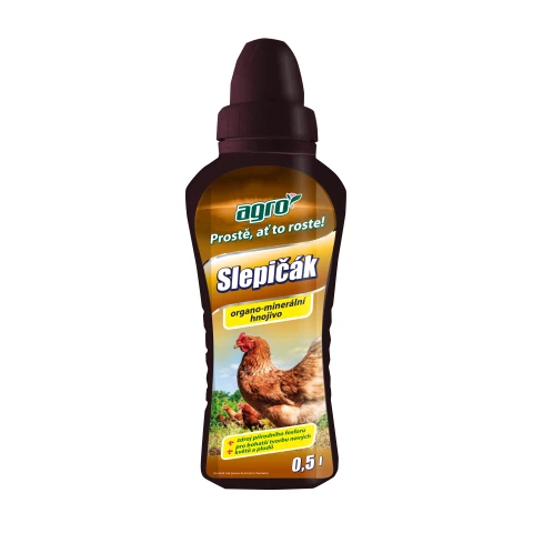 AGRO Slepičák je unikátní organo-minerální hnojivo pro všechny rostliny pěstované na zahradě ve volné půdě i v pěstebních nádobách. Je zdrojem přírodního fosforu. Slouží pro bohatší tvorbu nových květů a plodů. Použití hnojiva: Před použitím obsah protřepejte! 1x za týden v době vegetace (duben - září) přidejte 15 ml hnojiva (viz. ryska ve víčku) do 5 l vody, promíchejte a zalijte plochu 1m2. Zálivku provádějte na půdu. V případě plošné zálivky na poživatelné nebo krmné části rostlin proveďte poslední hnojení minimálně 21 dní před sklizní. Doba exp: 10 let